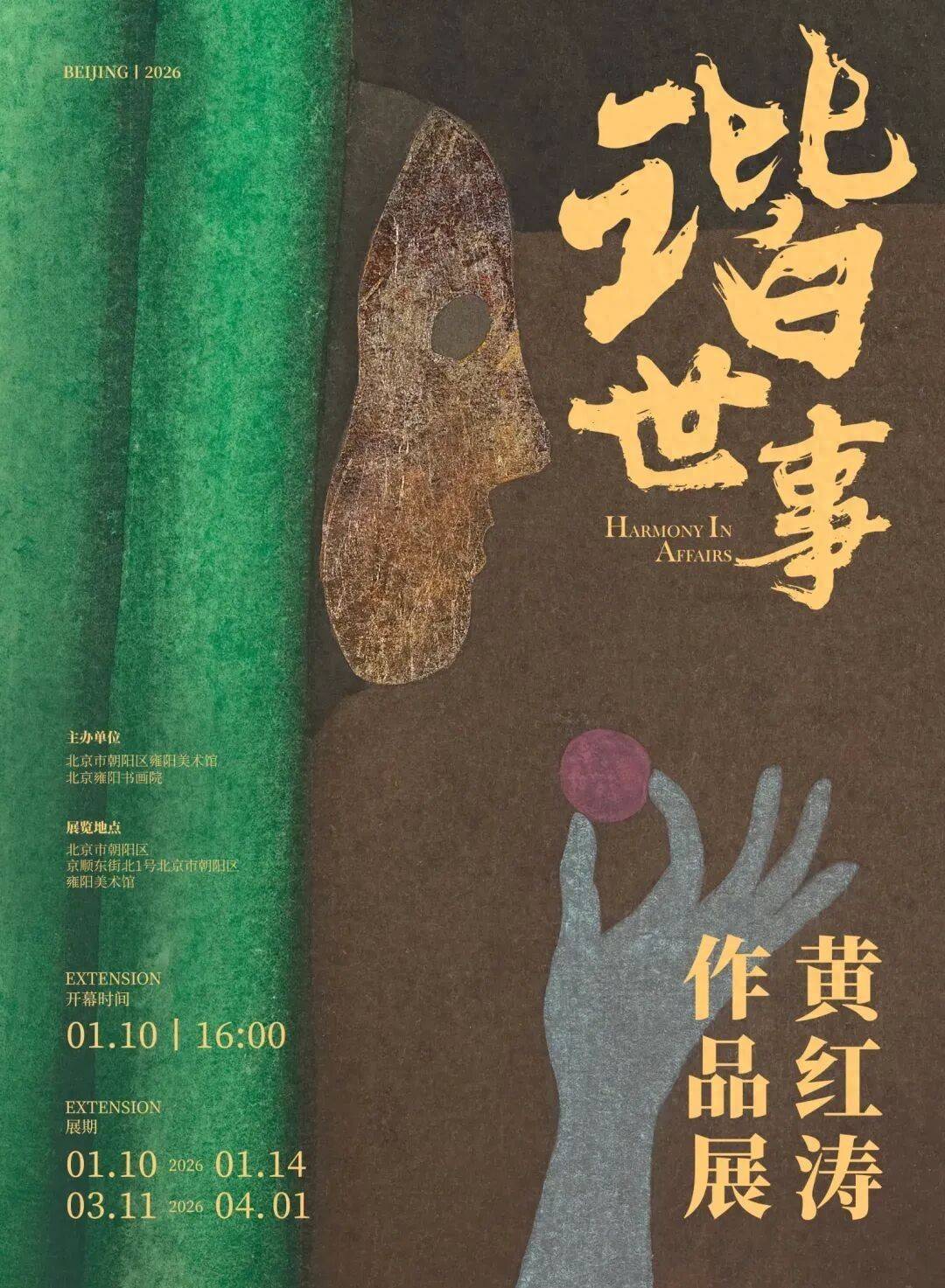 2026年1月10日下午,由北京市朝阳区雍阳美术馆、北京雍阳书画院联合主办的“谐世事——黄红涛作品展”在北京市朝阳区雍阳美术馆隆重开幕。本次展览将分两个阶段向公众开放,第一阶段为2026年1月10日至1月14日,第二阶段为2026年3月11日至4月1日,全面展示艺术家黄红涛近年来的创作成果与艺术思考。